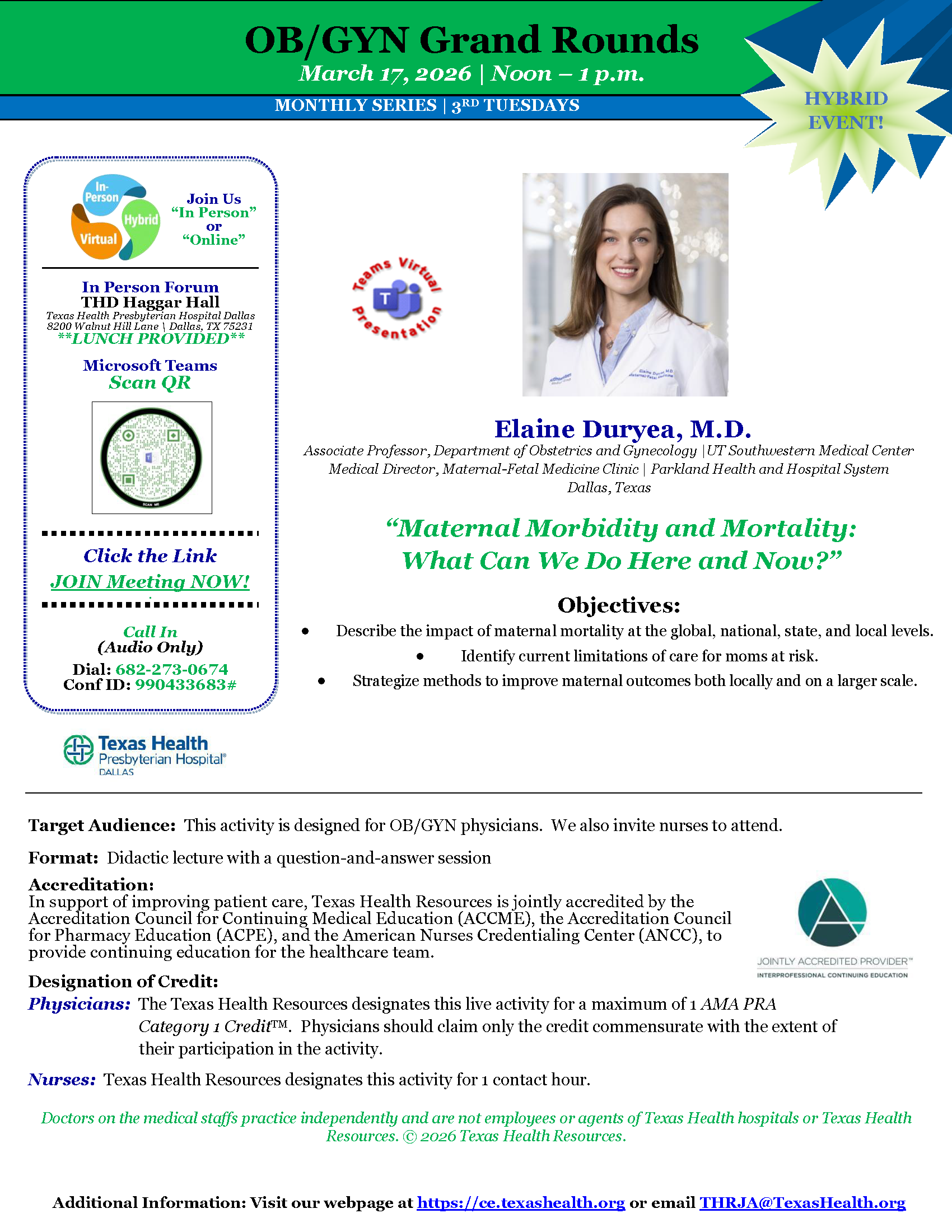 The Texas Health Resources designates this live activity for a maximum of 1.00 AMA PRA Category 1 Credit™. Physicians should claim only the credit commensurate with the extent of their participation in the activity.