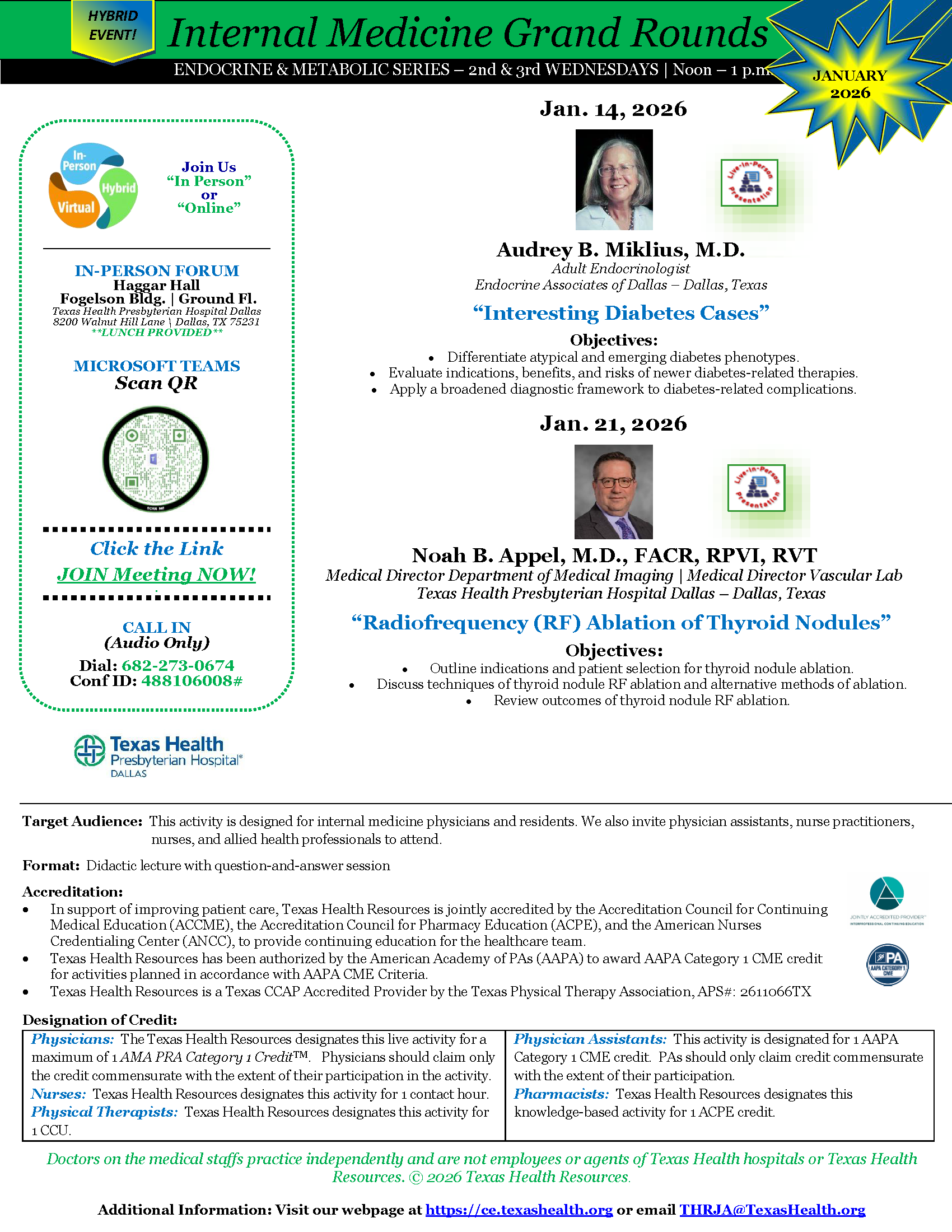 Texas Health Resources designates this knowledge-based activity for 1.00 ACPE Credit(s). Joint Accreditation Universal Activity Number: JA4008216-0000-26-001-L01-P