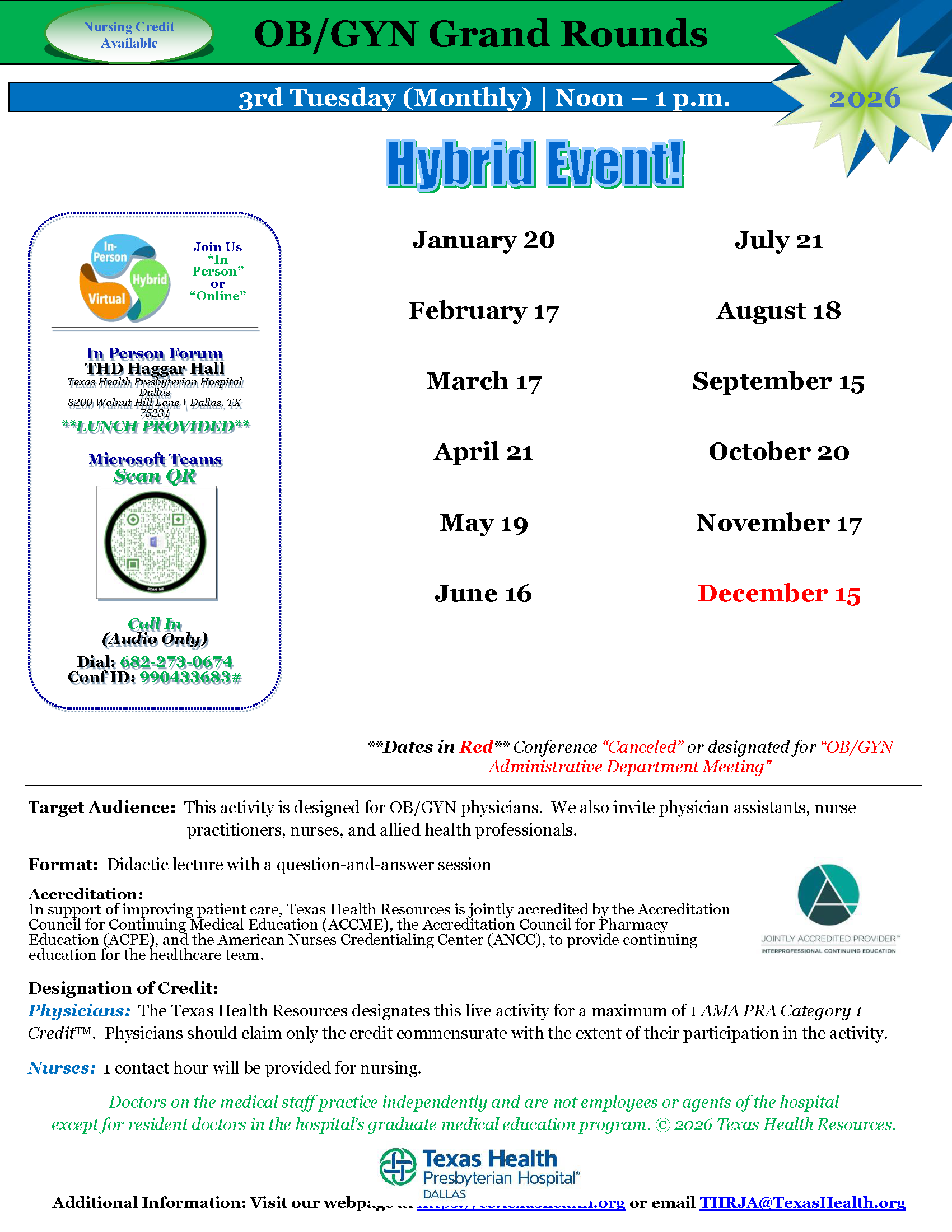 Series date: 01/01/2026 - 12:00am CST to 12/31/2026 - 11:59pm CST Annual Flier - THD OB GYN Grand Rounds - 2026.pdf