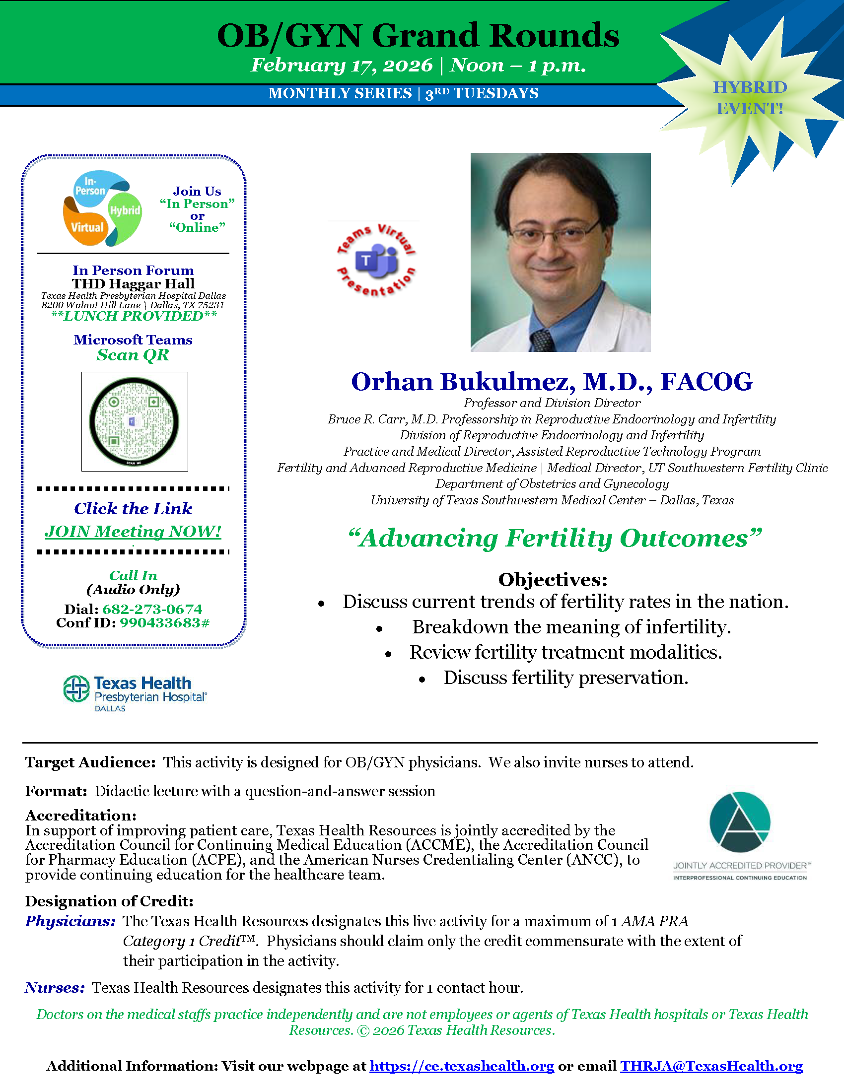 The Texas Health Resources designates this live activity for a maximum of 1.00 AMA PRA Category 1 Credit™. Physicians should claim only the credit commensurate with the extent of their participation in the activity.