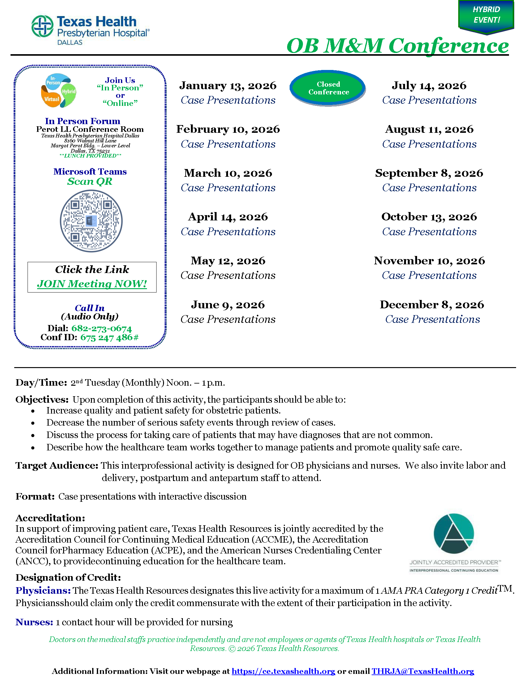 Series date: 01/01/2026 - 12:00am CST to 12/31/2026 - 11:59pm CST Annual Flier - THD OB MM Conference - 2026 (Revised 12.12.25).pdf