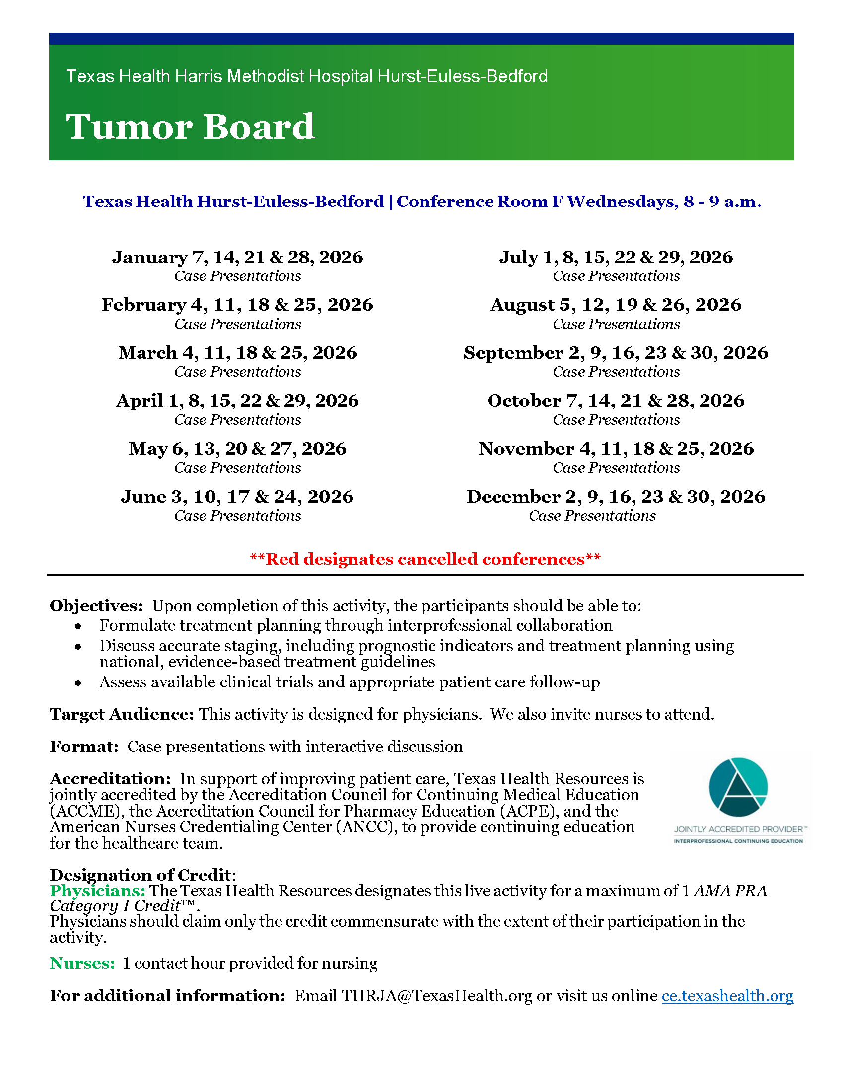 | THHEB Tumor Board - Case Presentations | 01/21/2026 - 8:00am to 9:00am CST |